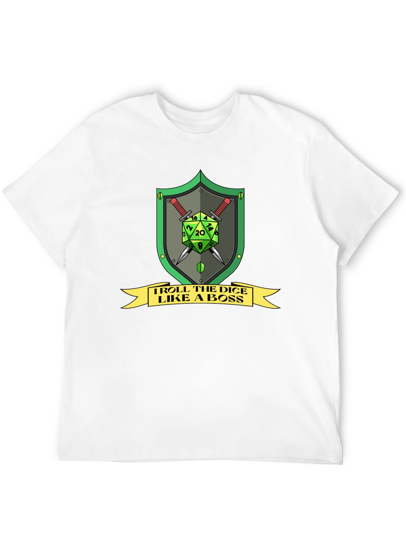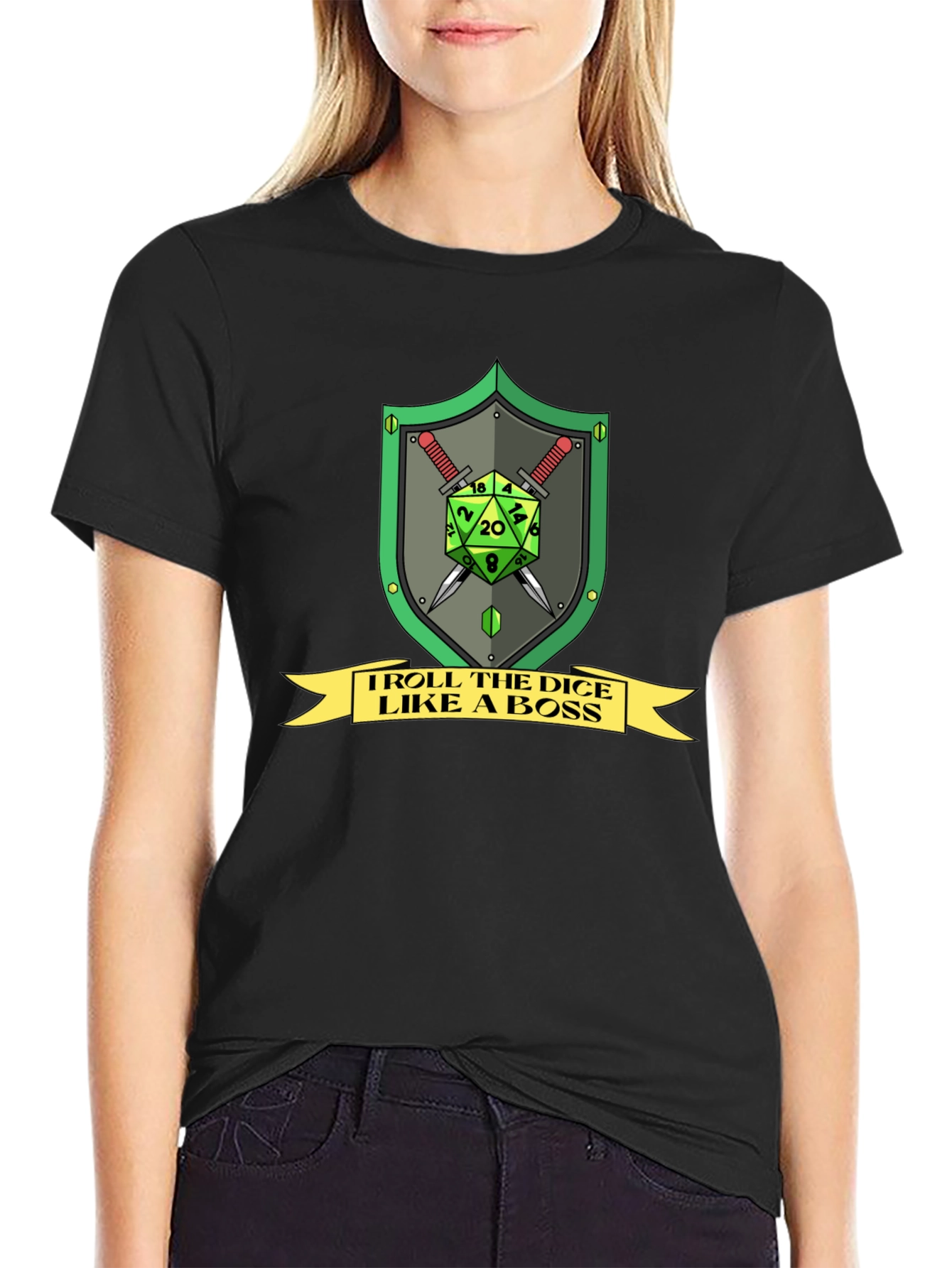 Destaca en tu próxima sesión de juego con esta llamativa camiseta negra. Presenta un diseño audaz con un escudo detallado adornado con una representación de un dado de 20 caras y espadas cruzadas. La frase "Troll the Dice Like a Boss" añade un toque de humor y personalidad. Ideal para jugadores de rol, aficionados a los juegos de mesa o cualquier persona que quiera mostrar su amor por la cultura geek. Fabricada con materiales de alta calidad para asegurar comodidad y durabilidad, esta camiseta es perfecta para usar en eventos, convenciones o simplemente en el día a día. Haz una declaración y demuestra tu estilo único con esta prenda original y atractiva.