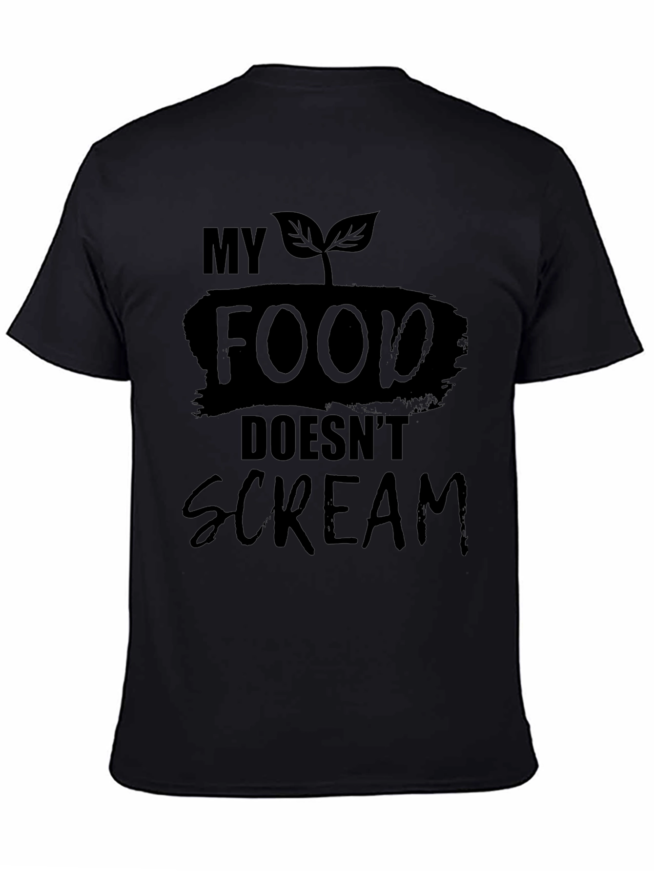 Luce con orgullo tu estilo de vida vegano con esta camiseta negra para hombre. Con un diseño original y llamativo, la frase "My Food Doesn't Scream" (Mi Comida No Grita) resalta tu compromiso con una alimentación consciente y respetuosa con los animales. Ideal para el día a día, eventos veganos, o como un regalo perfecto para ese amigo o familiar comprometido con el veganismo. Fabricada con materiales suaves y cómodos, esta camiseta es una declaración de principios con estilo. Combínala con tus jeans o pantalones favoritos para un look casual y comprometido.